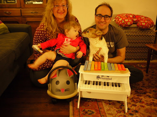 I don't have a lot of time for an update (which is why this being posted a week past her birthday) but to summarize, Chris is now Dr. Chris. Emilia is now a one-year-old. Speck and Emilia exchange kisses and snuggle up during naps which makes my heart grow three sizes. I think they've bonded over the thrill of Emilia dropping/purposely feeding Speck from her high chair. Emilia loves the gifts we gave her (Wheely Bug, Schoenhut Piano, and Sevi Xylophone) as well as the gifts she was given at her big party.